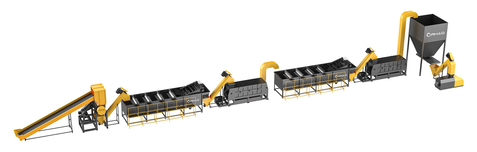 ​Streamline Eco Tech​​ specializes in cleaning, pelletizing, and modifying waste plastics, aiming to produce high-end recycled plastic products that meet international standards. Its independently developed ​​waste plastic film recycling and cleaning system​​ is designed primarily for processing PE films contaminated with labels, paper residues, and small amounts of sand and silt (e.g., industrial wraps, packaging films). The system’s process flow includes: